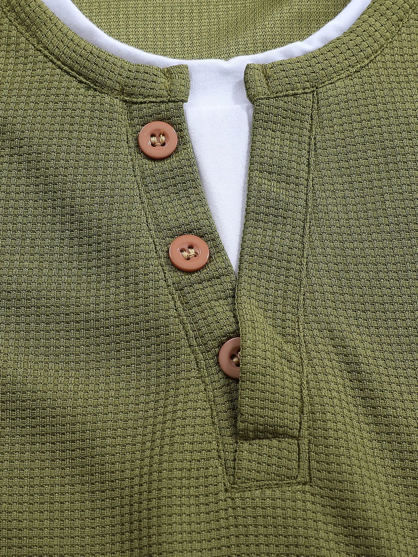 Get ready to upgrade your casual wardrobe with the Men's Waffle Cotton Henley Shirt. Its cozy waffle texture keeps things comfy, while the Henley neckline adds a dash of laid-back charm. Whether you’re layering up or going solo, this tee brings easy style and all-day comfort—because looking good should never be boring!
